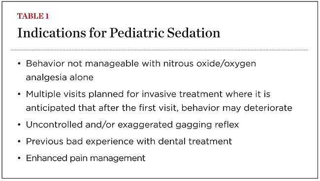 Sedation of a child is a continuum. Thus, it is not always possible to predict how a child will respond. Dentists intending to provide minimal sedation should be able to diagnose and manage physical consequences in the event the level of sedation becomes deeper than expected. For a list of indications and contraindications to the administration of pediatric sedation, see Table 1 and Table 2.