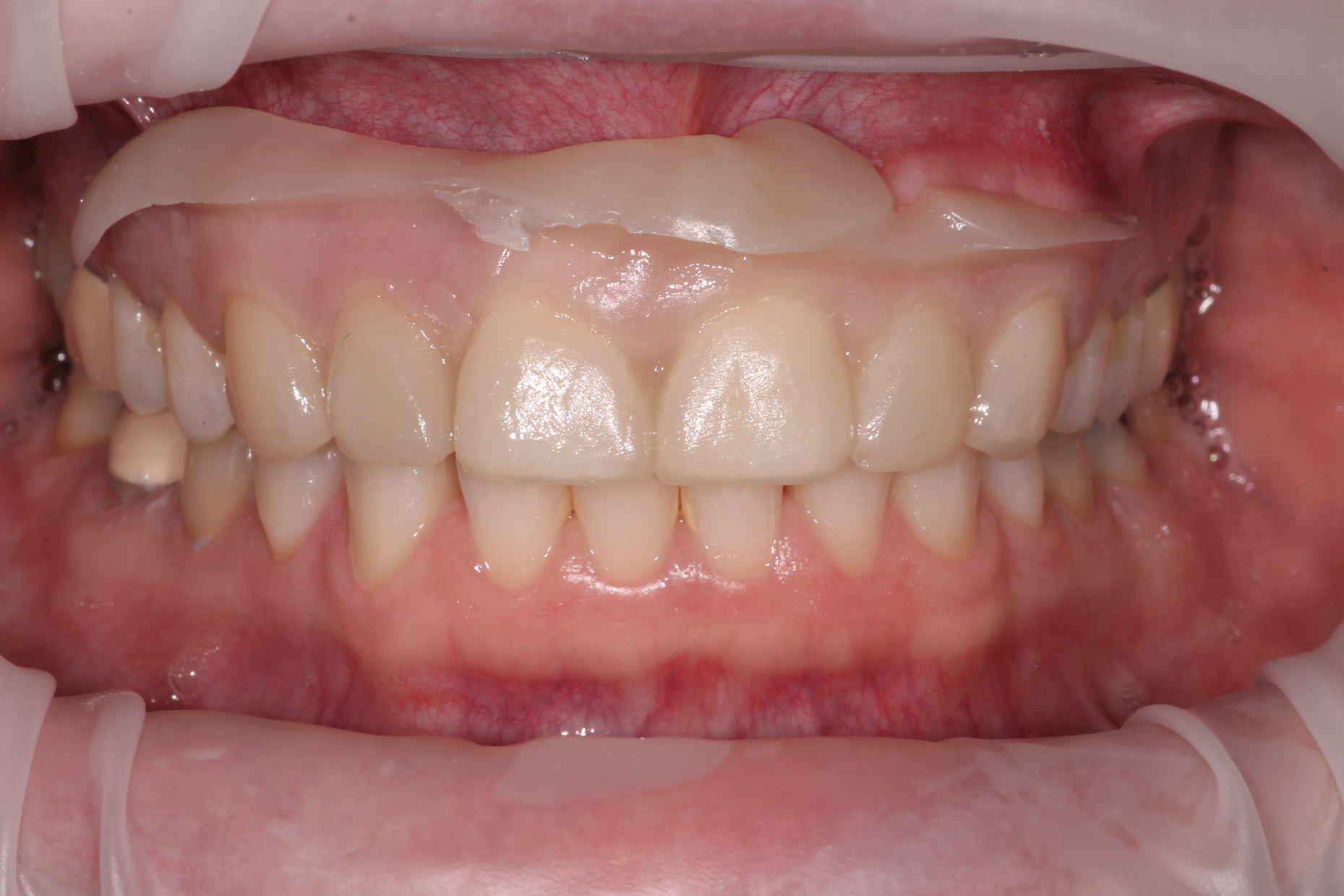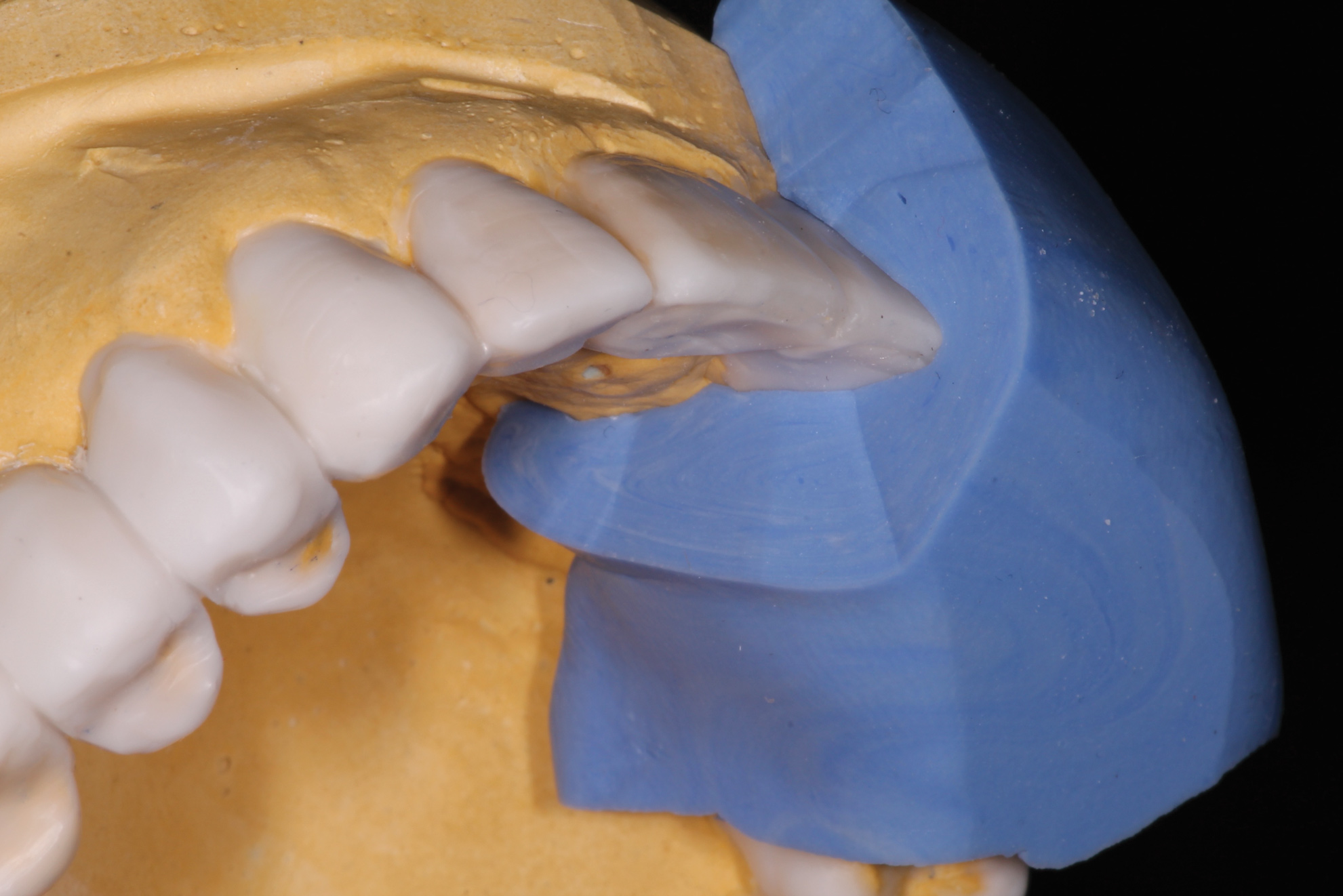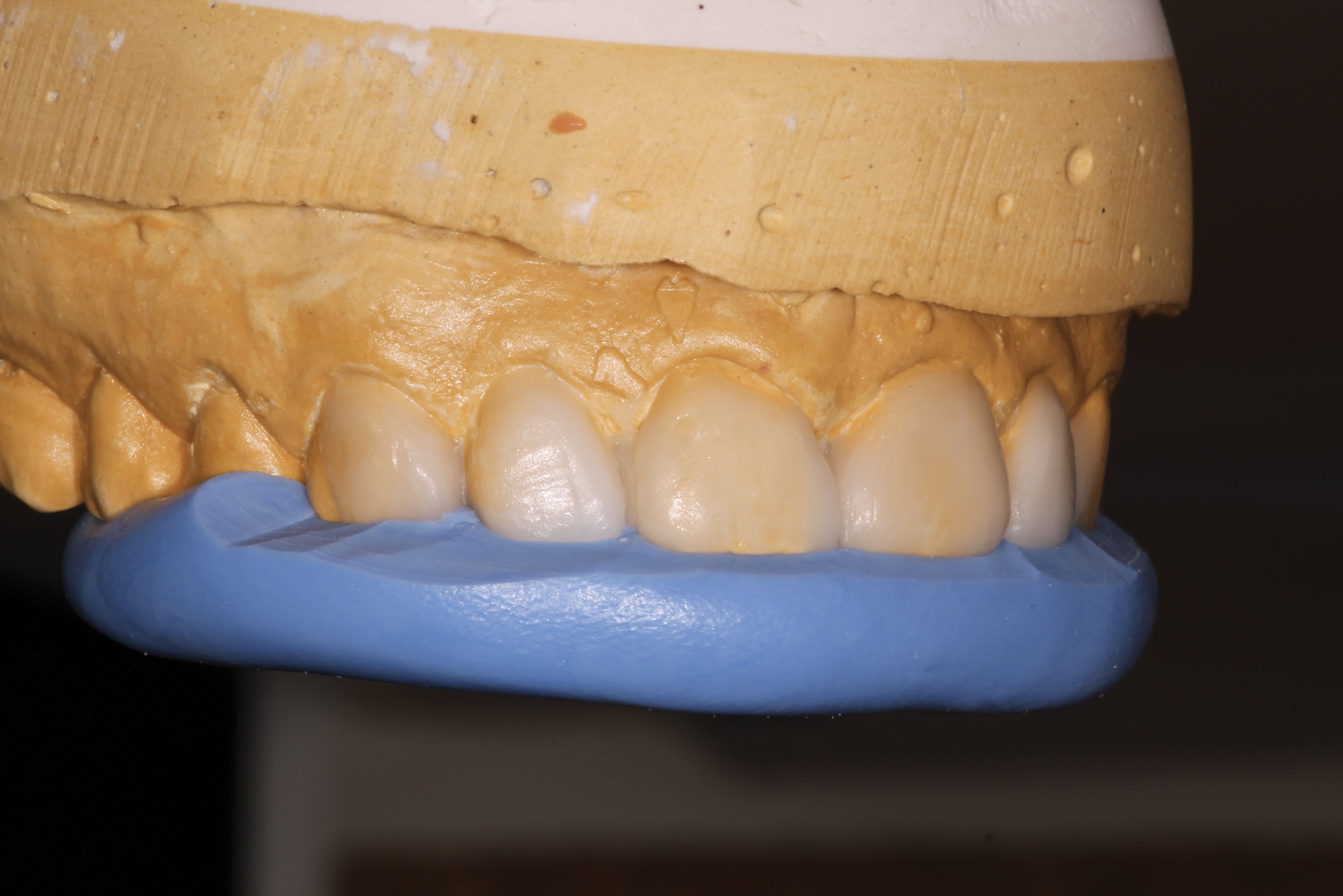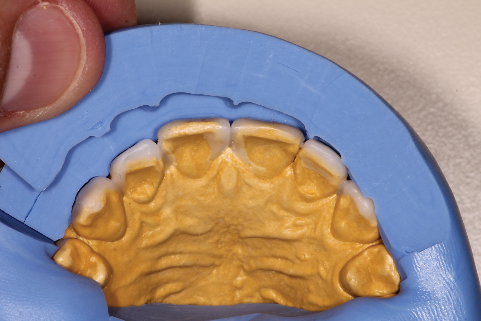 The lingual contours, which relate to function rather than esthetics, are as important as the facial contours, especially when a patient has worn away tooth structure as a result of occlusal instability. When a new anterior guidance has been diagnostically completed in the wax-up, this information still needs to be transferred to the preparations via silicon preparation matrices and further tested in the provisional phase (Figure 9 and Figure 10).18 Once confirmed, the lab can duplicate the lingual contours in the final restorations.19