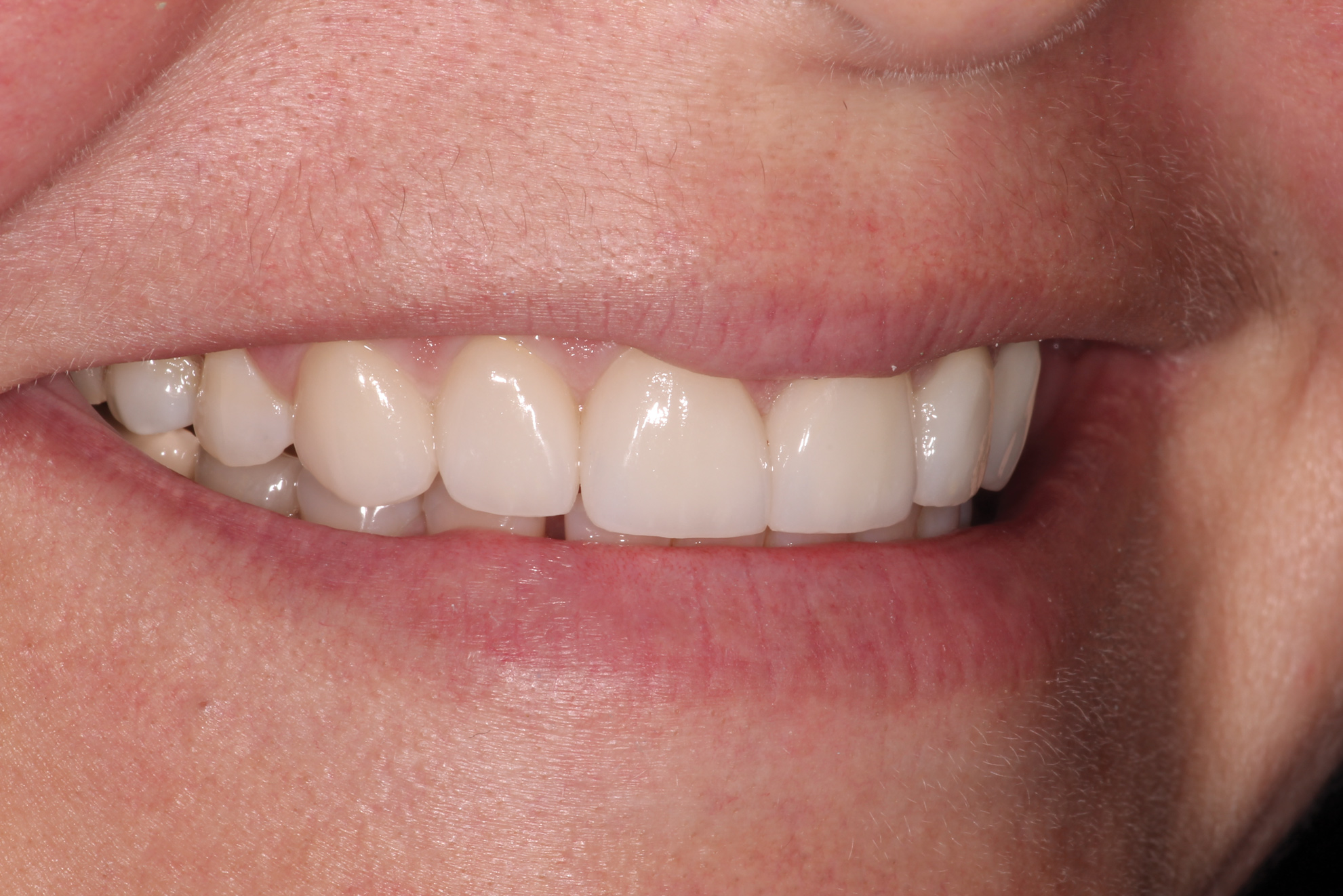 If a patient desires increased translucency to bring a more youthful appearance to his or her new smile, it is important to establish enough clearance for this to be built into the final veneer or restoration. Considering the average central incisor to be 10 to 11 mm in length,12 the dentist has to determine if the case will require an additive technique or a reductive technique. Ideally, there should be 1.5 mm of clearance for a proper incisal edge to be replicated in a porcelain restoration. By transferring a preparation guide from the wax-up to the mouth, this can be visualized before any reduction is attempted (Figure 5 and Figure 6).13 In situations where greater length is desired, there is the possibility that no reduction will be needed; however, for the patient who feels that his or her teeth are too long, the incisal portion might need to be reduced in order to ensure proper uniformity in the incisal edge translucency. Using a preparation guide to ensure proper preparation design and avoid compromises related to under-reduction allows the laboratory to seamlessly reproduce the incisal edge translucency and surface textures that make porcelain restorations display a lifelike appearance (Figure 7).14