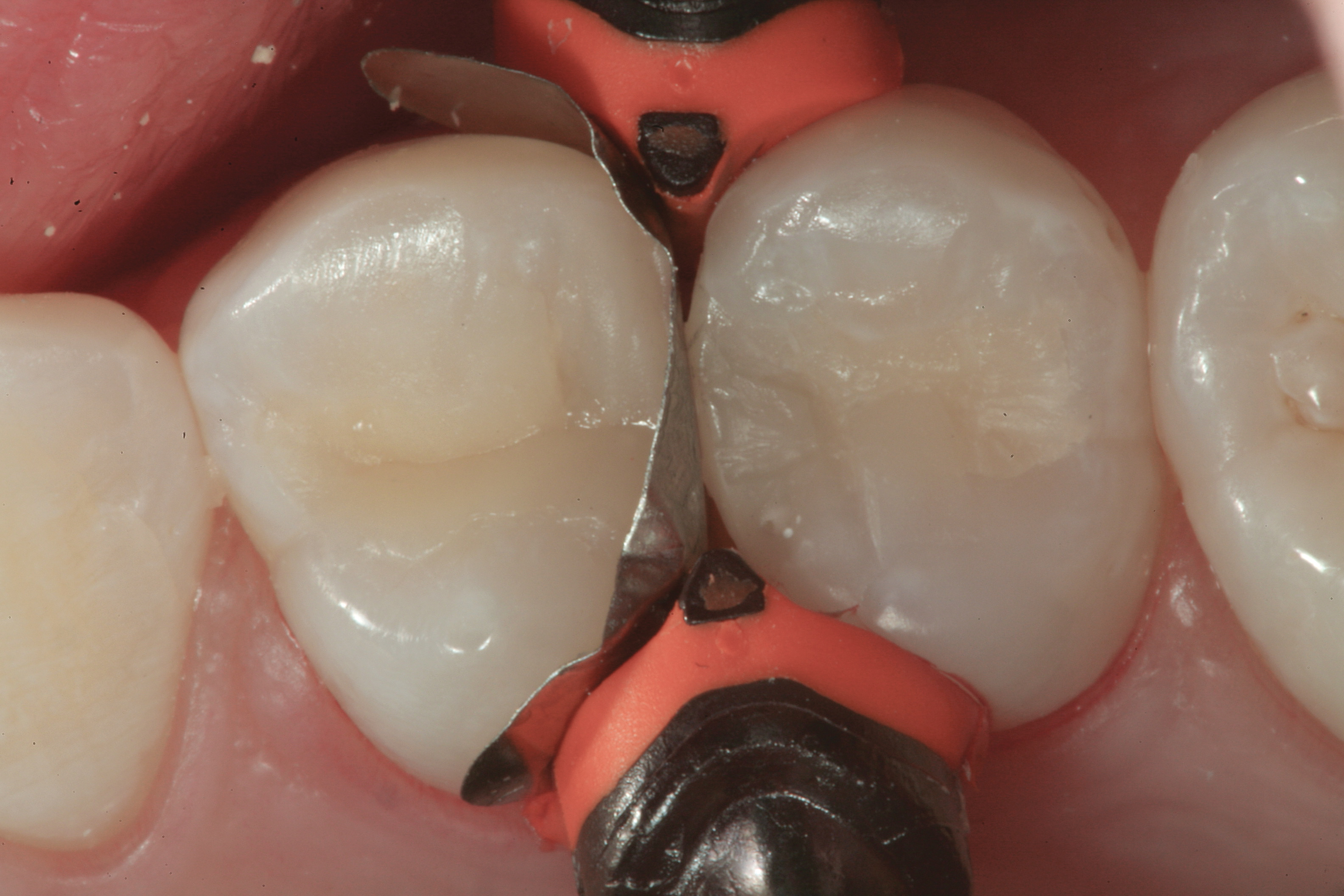 As early as 2001, studies comparing incremental versus bulk-fill placement of composite showed there is no difference in cuspal deflection or marginal integrity when comparing techniques of placement.13-18 The main clinical issue with bulk-fill materials is depth of cure. It is also important to note that directional curing from the buccal and lingual (palatal) aspects after removal of the matrix helps increase the ability to cure composite at the gingival margin of the proximal box in a Class II restoration.14-18