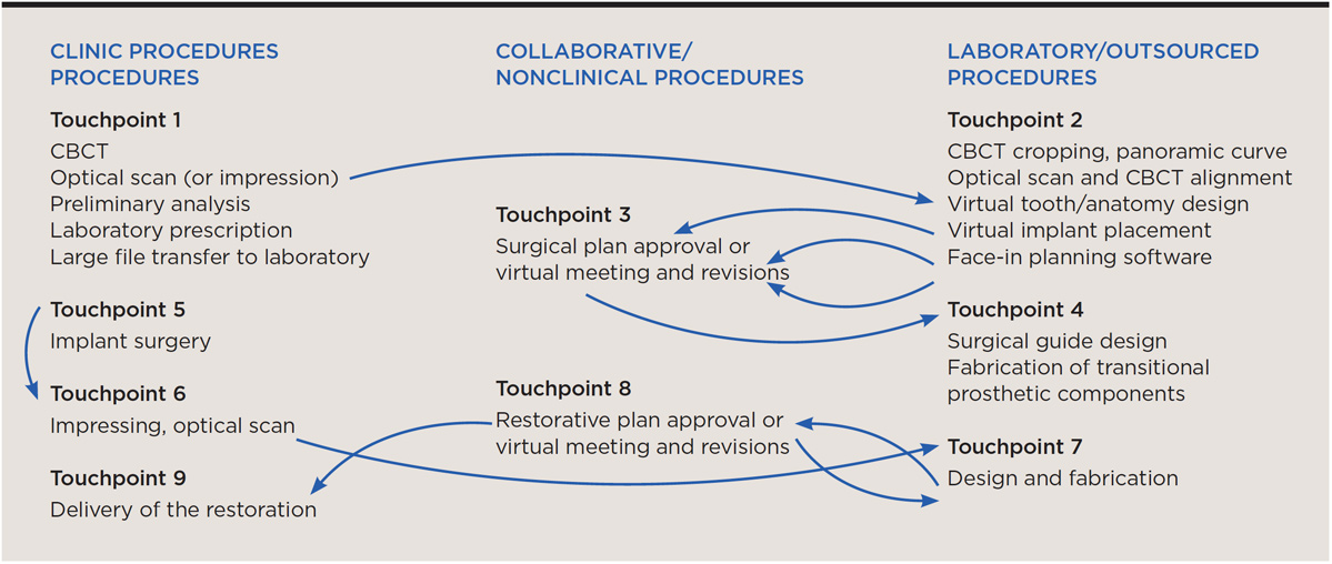 The authors' interpretation of and a step-by-step approach to the digital workflow for dentistry, referred to as "digital touchpoints," are outlined in the following sections.