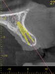 For dental implant-based treatment, the planning phase begins with collection of basic data sets; this is digital touchpoint 1. It includes: (1) a cone-beam CT (CBCT) to view edentulous areas or failing tooth structure, bone, and anatomic landmarks under the soft tissue (Figure 2 through Figure 4); and (2) an intraoral optical scan (IOS) or a scanned model or impression to record the soft tissue and tooth anatomy (Figure 5). The superimposition of the digital imaging and communications in medicine (DICOM) files from the CBCT and the standard tessellation language (STL) files from the IOS allows visualization of how bone, dental structures, and soft tissues relate. Both digital data points are key to implant selection and determining the surrounding bone-grafting needs. An initial treatment plan includes determining the desired implant manufacturer/implant design, size, and positions; these decisions remain the responsibility of the clinician (restoring and surgical team members) and not the technician or planning team.