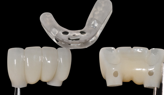 With today's monolithic, stain-only occlusal surfaces, any modification can contribute to a poor esthetic result as the coloration is removed down to an underlying monotone white appearance. Designs derived from the digital wax-up can be verified and approved in a virtual meeting, much like that of the implant and surgical guide strategy steps. Once completed, the restorations are either cemented or screw-retained according to the manufacturer's instructions.