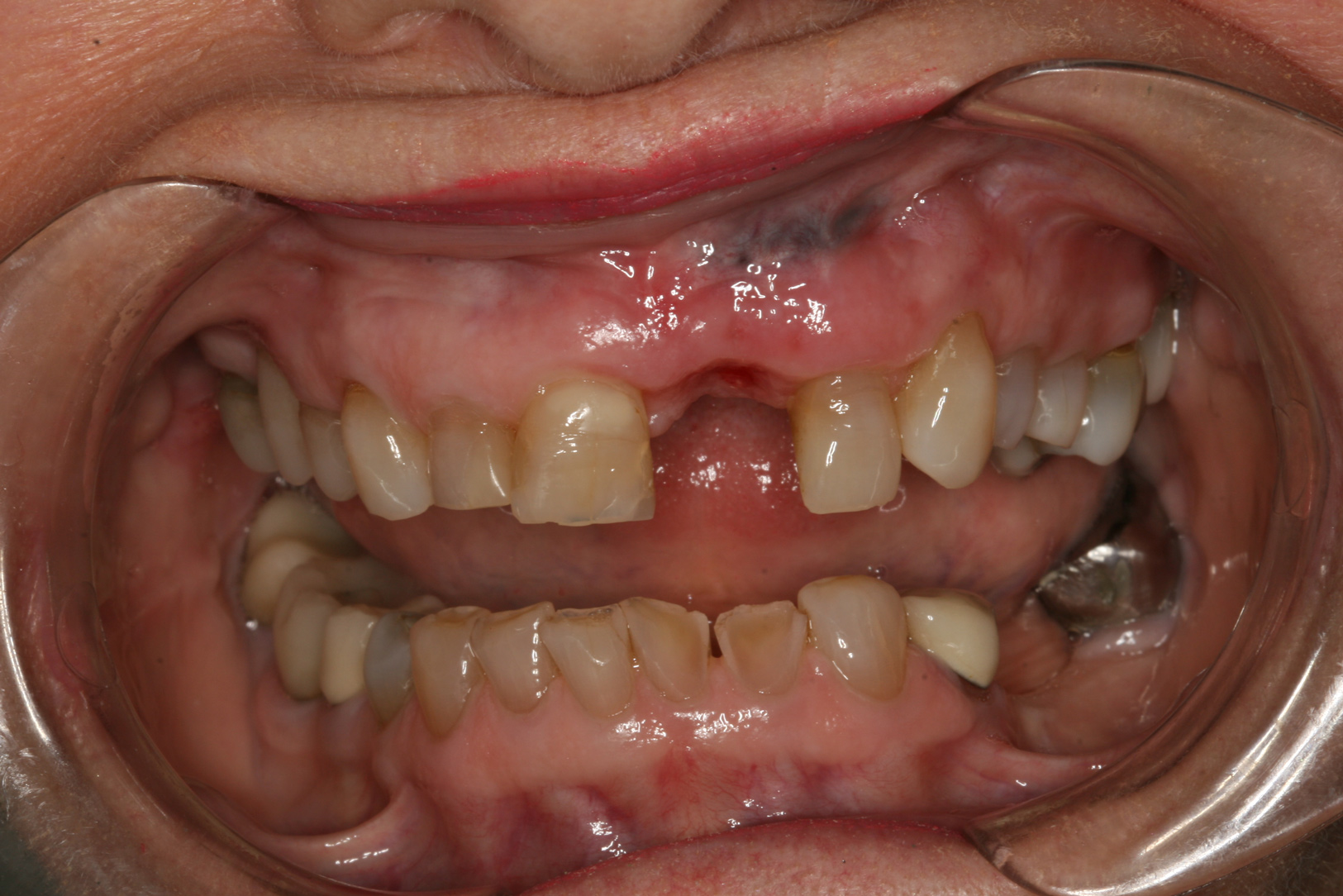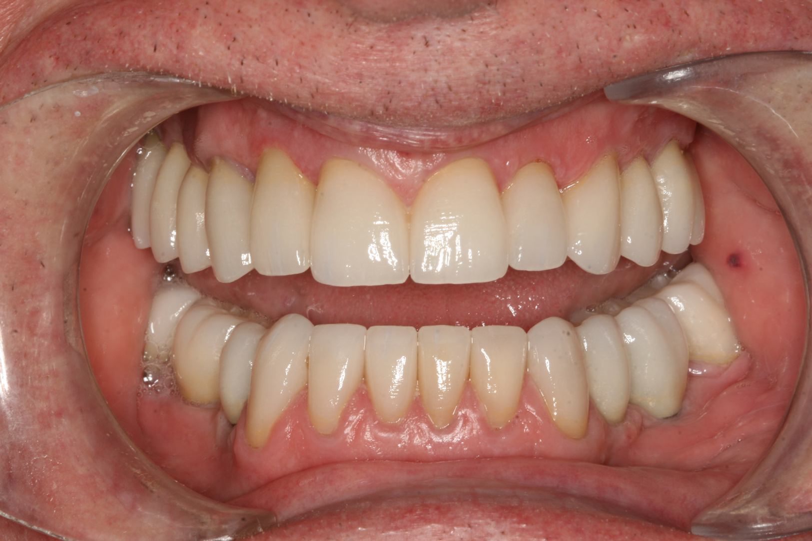 Many challenging situations can be evaluated and addressed by using the putty matrix provisional technique. Restoration of missing teeth, evaluation of questionable teeth, healing of tissues after periodontal surgery, integration of implants, and modification of occlusion are a few of the most prominent areas that can be addressed through provisionalization (Figure 6). Missing teeth can be conveniently added back by bridging gaps after extraction. Splinting periodontally involved or questionable teeth can help stabilize them while attempts at managing the destructive effects of periodontal disease are employed. Osseointegration of dental implants can be managed at all stages from placement to development of emergence profile using properly designed provisional restorations. Hard and soft tissues can be monitored for development and healing while managing occlusal forces to provide a stress-free and cleansable environment. Proper arch form can be developed when teeth are misaligned. Provisionalization can allow the restorative dentist to predictably control the outcome of a case through physical development of form and function.6