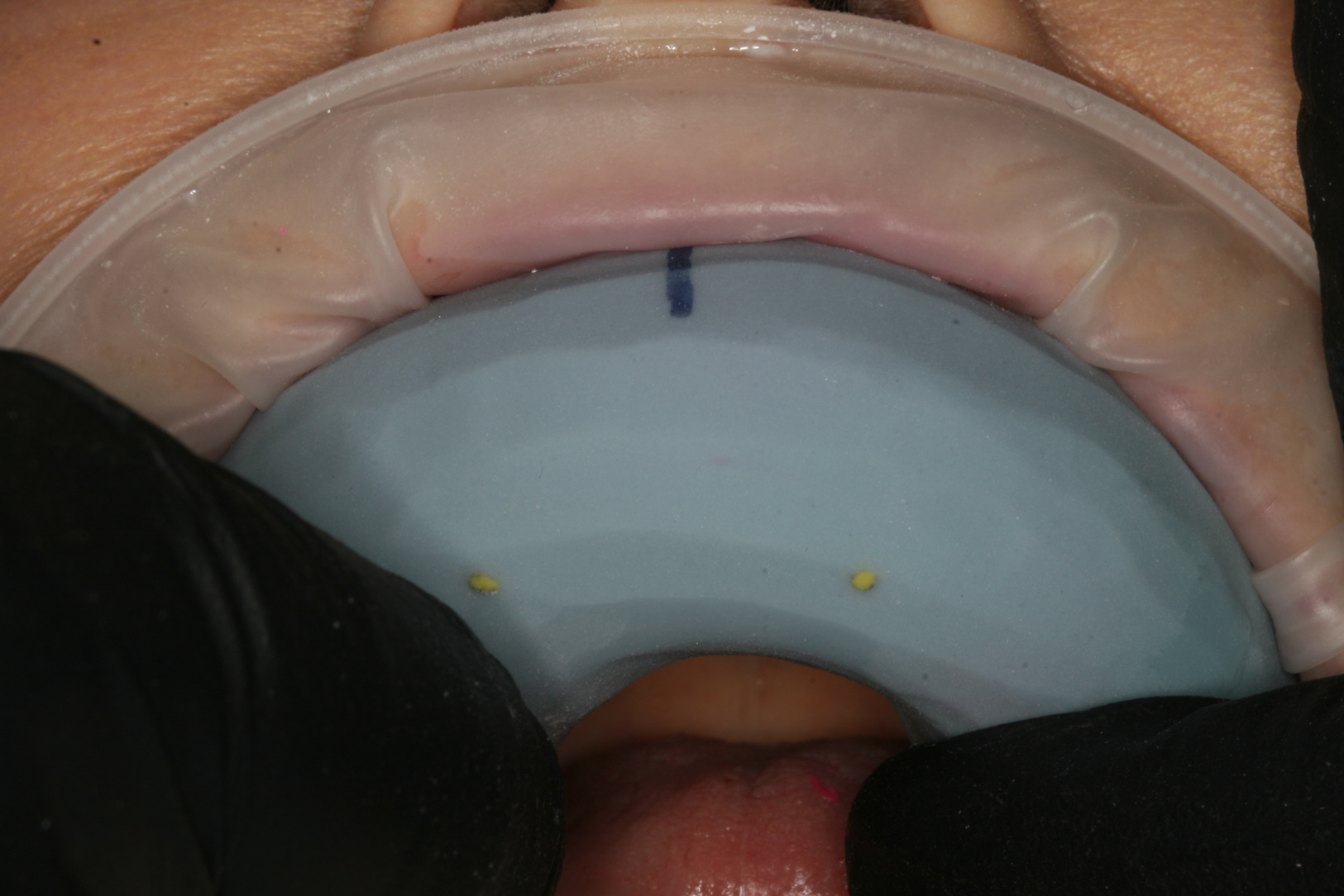 Not only does the mock-up serve as a tool for communication for the restorative team and the patient, it can also be used as a template for provisional or definitive restorations. A polyvinyl siloxane matrix can be fabricated using the physical mock-up.5 A light-bodied, thixotropic polyvinyl siloxane material can be applied to the model to capture fine form and textural detail. It can then be compressed into place with a heavy-bodied, rigid putty material that provides solid form to the matrix. The matrix can then be removed from the model, be trimmed as desired, and then be ready for use (Figure 2: video). A self-curing provisional material, such as acrylic or bis-acrylic, can be placed in the matrix and sandwiched onto the prepared teeth. After being cured to the desired stage, the provisional material, along with the matrix, can be removed from the teeth, trimmed, and polished. After cementing into place with a temporary cement, the provisional restorations fabricated through this method can be used as a tool to communicate shared esthetic desires between the patient and the restorative team, to evaluate function, and to preview the patient's definitive restorations (Figure 3 through Figure 5).6