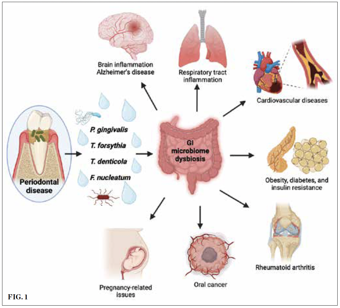 The "gum-gut connection" is a concept that is garnering increasing attention within the fields of dentistry and healthcare in recent years.1,2 It underscores the intricate and dynamic relationship between two vital microbial ecosystems in the human body: the oral microbiome and the gastrointestinal (GI) microbiome. Because this connection has profound implications for overall well-being, understanding it is of paramount importance for dental healthcare professionals.