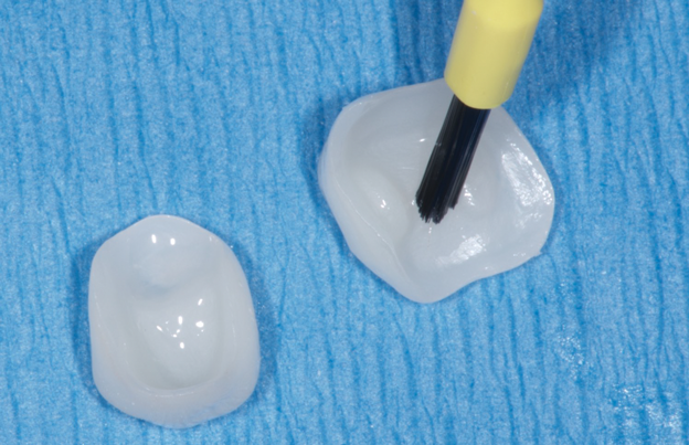 Use of the APC zirconia-bonding concept is mandatory for zirconia restorations such as resin-bonded fixed dental prostheses,32 laminate veneers, and inlays/onlays,33,34 all of which can demonstrate excellent longevity if they are bonded correctly.32 In addition, it is not limited to teeth and is also applied in the laboratory, such as for implant reconstructions that include cemented zirconia components. For new high-translucent zirconia products with lower flexural strength, proper bonding is even more important and may be necessary for restorations fabricated at minimum thicknesses because resin bonding increases ceramic strength. Using the APC zirconia-bonding concept is not necessary for full-coverage restorations with adequate retention, which can be inserted using a conventional cementation protocol.