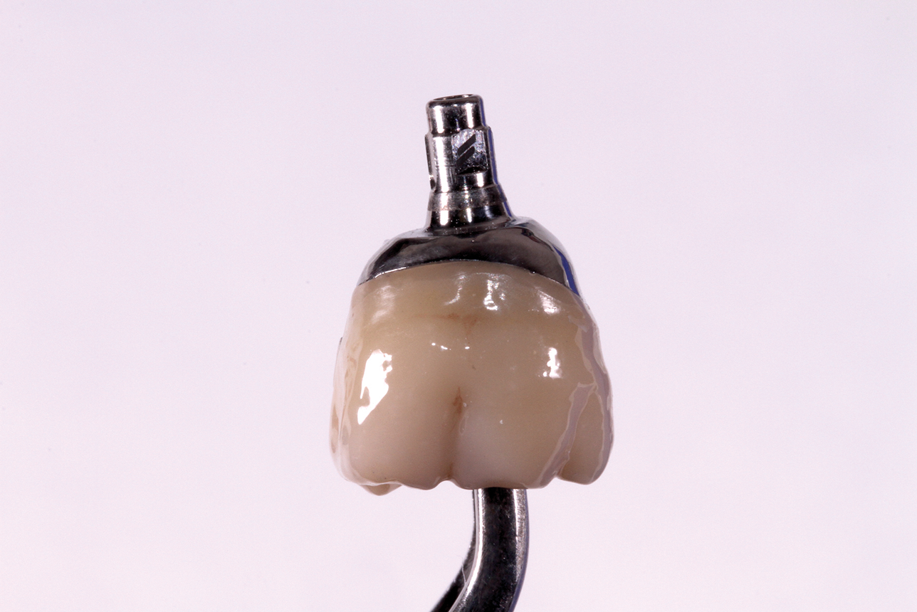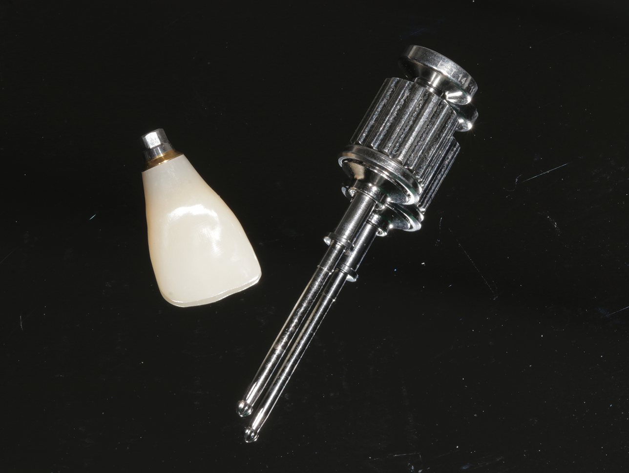 The classic version of the screw-retained implant crown is the custom-made screw-retained porcelain-fused-to-metal (PFM) crown that was first introduced to the profession in 1988 by a team from UCLA.1 This design generally relied on an abutment made of a waxing sleeve and a gold alloy base that the technician used to wax up a framework. After casting in gold alloy, feldspathic porcelain was usually layered on top to create the completed crown. The crown and the abutment were integral to each other and delivered as one unit. In recent years, this specific type of screw-retained restoration has fallen out of favor, seemingly as a result of the high cost of gold and the diminishing number of technicians trained in its fabrication.2