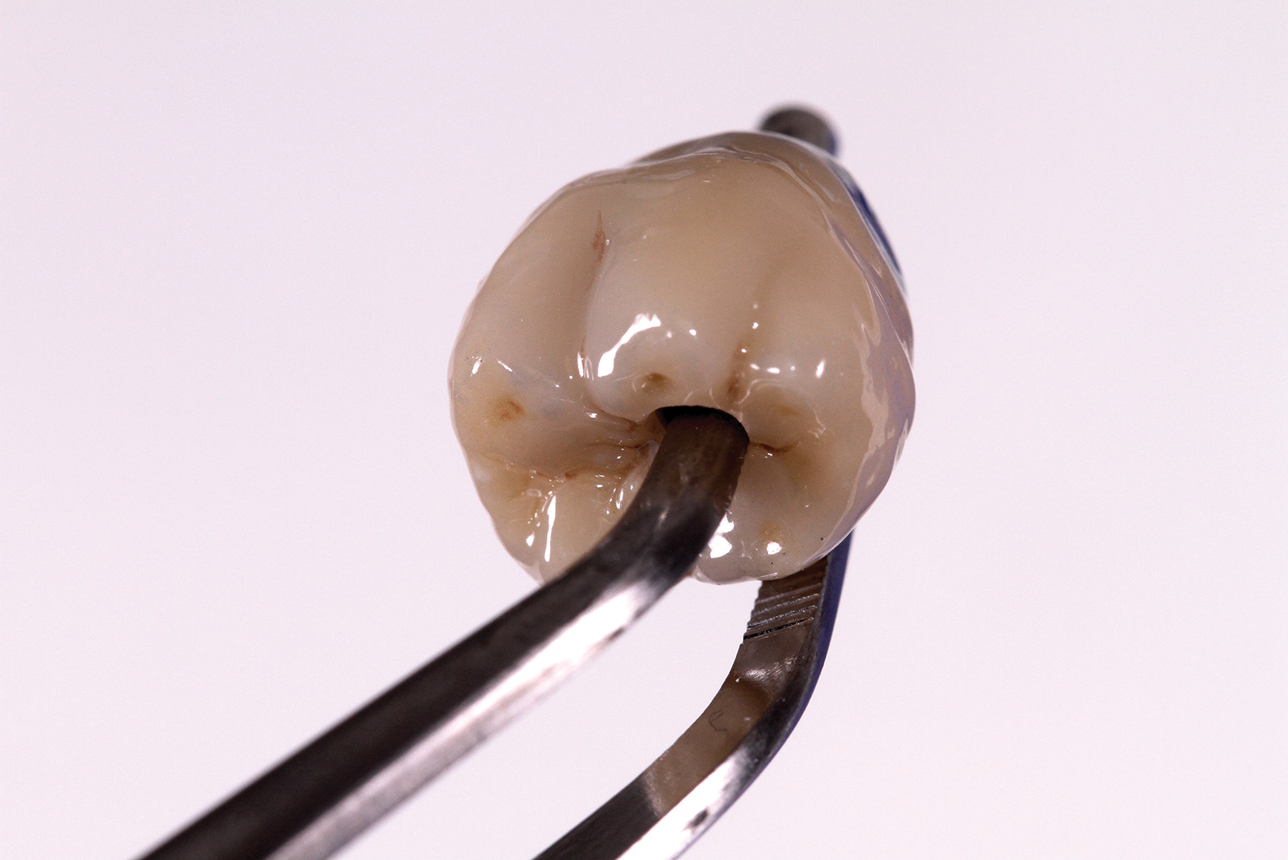 Regarding the screwmentable implant crown, there is not a yet a profession-wide consensus on the specifics of its fabrication; however, it does come in a few variants. It is generally agreed that the screwmentable implant crown has a screw access hole in the crown, which is made from a ceramic material that is cemented to an abutment. Although the cementation seems to be most often performed by the technician, some clinicians prefer to cement the crown to the abutment intraorally and then remove it briefly to eliminate the excess cured cement. Either way, the crown-abutment complex functions clinically like a traditional screw-retained crown. The primary differences are that the crown is usually zirconia or lithium disilicate instead of feldspathic porcelain and that it is mated to the abutment with cement. The abutment used in a screwmentable design can be either a stock abutment or a custom-milled abutment.